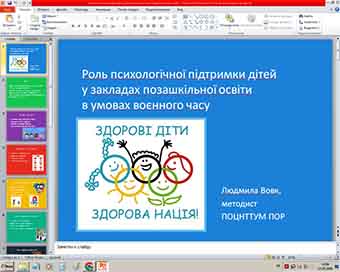 11 березня 2026 року в рамках проведення педагогічних читань методист Центру Вовк Людмила підготувала виступ на тему: ”Роль психологічної підтримки дітей у закладах позашкільної освіти в умовах воєнного часу„.